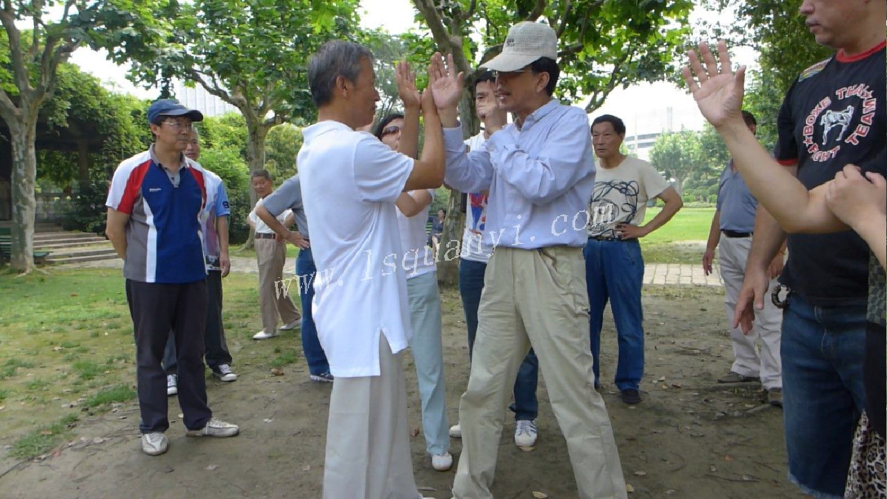 肖师讲解:燕子抄水 我新学了起跳,能跳起来打“燕子抄水”,因为有了起落的高低,感觉还不错。肖师在看过后,又为我指出了学习“内家拳”的一个很关键的问题:“学会控制”。 肖师对我说:你要用意识去控制拳,打的过程中尽量不要失控,被拳带着走。如何去控制你的拳?一是静,二是定。只有静下来,拳才能打定,也只有能打定,才是做到了静。 肖师再次对我强调:千万不要为了追求起跳的高度,下势的速度,而被拳带着走,失去控制。记住,越是难度大的动作,越是要学会控制住,打定,一记一记打标准。把意识带进去,尽量用意识去指挥拳。对你而言,打水浪拳也是如此! 肖师讲解:碰意 肖师在给我们指点“碰意”时,再次强调了握拳的姿势要正确,意识要“朝前朝上”,注意手腕。两手臂出拳的时候要在同一条直线上。路径必须正确,出拳时,先下蹲后抽,肩带动手臂向右后拉足,拳从腹部经胸前攒出。
