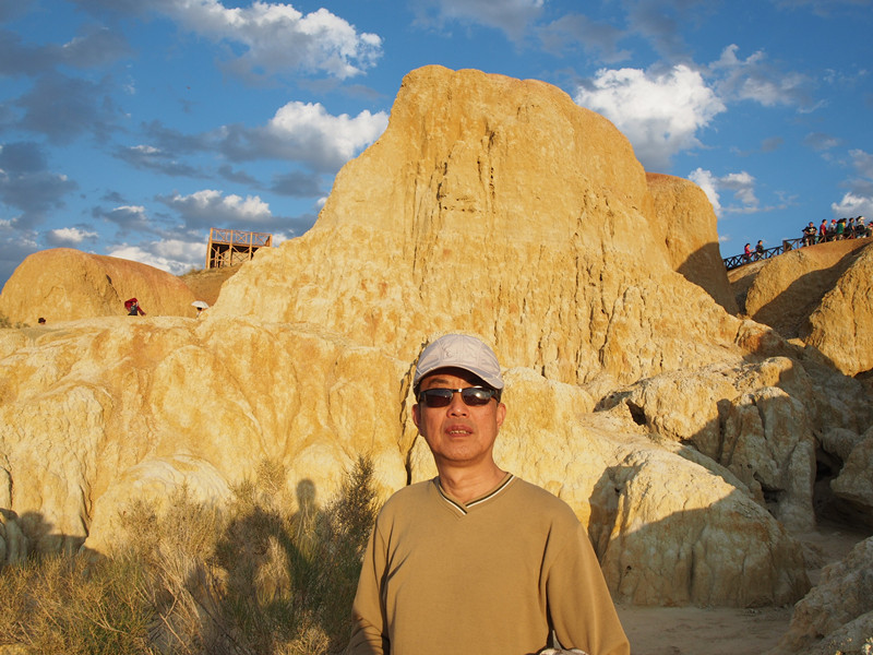 作者:王国燕 新疆之行第三天 在上海时托在乌市的欧阳给我们报了新疆国际旅行社27日火焰山,千佛洞一日游。28日—30日喀纳斯4日游。今天一早上了大巴,导游跟老师说,你们昨天的田导,托了她,一路要好好照顾我们。(想起来了,老师要我回沪后,发信息谢谢二位导游,赶快发,不然又要忘了,老师做事从不计较他人,而总是不忘对他人的感恩。)昨天田导没和老师说上几句,老师用导游业內行话讲了几句,田导立马对我们另眼相看,临走,偷偷叫上老师,给了老师一大包最好的葡萄干。 补充一下,去喀纳斯路上,我曾问过老师,能用一句话,对天池作个评价吗? 老师答:百里涛声,气势如虹。左宗棠植树造林“新栽杨柳三千里,引得春风度玉关”。广种榆树,蔚为壮观。 又问对火焰山和千佛洞的评价? 师答:火焰山盆地海拔负150多米,坎儿井的形成是我一直想了解的,我们还没到最有风味的坎儿井。千佛洞壁画内容丰富,历史悠久,最好能焚香沐浴朝拜,独自一人细细观看。