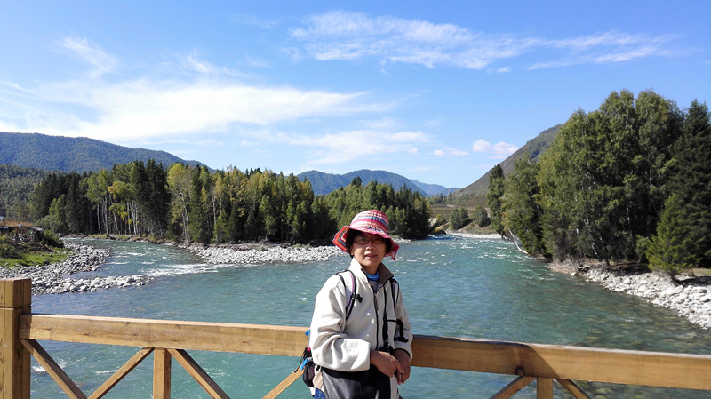 作者:王国燕 新疆之行第四天 昨天黑到了布尔津,今天天还未亮,布尔津的全貌尚未看清,六点多拿上干粮,跳上大巴向喀纳斯湖驶去,约4个小时行驶180公里,抵达阿尔泰山区,参观阿贡盖提草原石人,一个介绍哈萨克族最传统、最古老的文化传承的博物馆。这是一个自费选择景点,每人200元,老师非常睿智的请导游为我们抉择,而导游却很知趣,请我们自己定,为了感谢导游对我们的照顾,给她些面子,我决定买单。 结束后,驱车抵达贾登峪,终于来到了期盼已久的喀纳斯湖景点。 喀纳斯具北国风光之雄浑,又有南国山水之娇秀,加之这里还有“云海佛光”、“变色湖”、“浮木长堤”、“湖怪”等胜景、绝景,称得上西域之佳景、仙景!北面是白雪皑皑的阿尔泰山、高耸如云的友谊峰,湖周重峦叠嶂,山林犹如画屏。不同的植物群落层次分明,色彩各异。每至秋季更是万木争辉:金黄、殷红、墨绿各呈异彩。叶茂,枯叶朽木上苔藓、野草遍生。林间空地草甸如茵,山花鲜艳。风静波平时湖水似一池翡翠,随着天气的变化又更换着不同的色调,9月初的喀纳斯树叶仅有部分泛黄,想象当满山的一片金黄的时候,那是何等的壮观。遗憾的问老师如果晚二个星期到,是否更好? 和老师一起登上1000多级台阶,踏入观鱼亭,鸟瞰喀纳斯的全貌,心旷神怡,美不胜收。老师说,走过盘山公路,今天第一次走盘山草原公路。 下山后,我们乘区间大巴,分别在驼颈湾、变色湖、卧龙湾三个点下车留影留。晚上住宿贾登峪新建别墅宾馆。