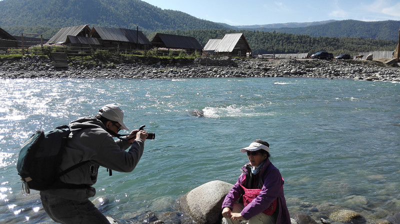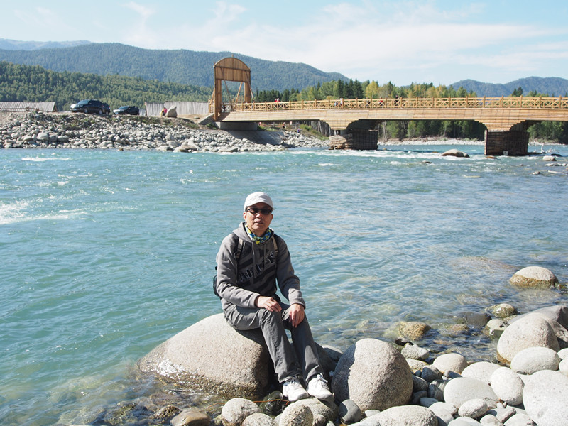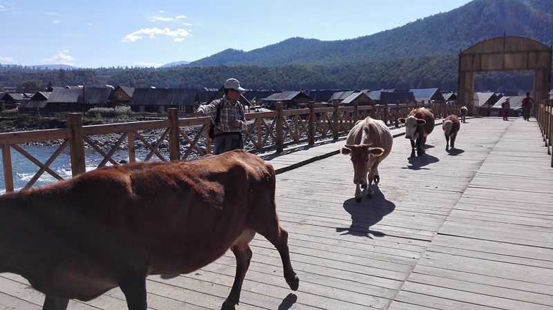 “禾木”景点,山村气息浓厚,小桥、流水、人家、牛羊………。 根据导游指的方向,我一口气登上了当年成吉思汗点兵30万的大草坪。 当年一代天骄就是在这里面对30万大军发誓:要征服欧亚大陆………。 他,做到了,为中国在世界上留下了威名! 关于喀纳斯、禾木的照片,我前几天已经发了,可以再爬楼去看看,特别是我拍的那张老师“蒙面刀客”的照片………