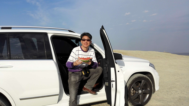 作者:王国燕 新疆之行第六天 离开布尔津,总是匆匆,天未亮,就集合向西域胡杨林驶去。车上导游分发给每人一个馒头、一个鸡蛋,一瓶矿水作为早餐颇为艰苦。辛亏昨晚和老师一起在布尔津的面包房买了黄油烤的面包、蛋糕。蛋糕纯正美味,烤面包比上海西点屋做的还要好,出乎我们的意料。 车进胡杨,一片沧桑沉寂、悲壮凄凉的胡杨林,看到空旷无边,千姿百态的一颗颗胡杨树耸立在那里,甚为惊璨,每一颗胡杨树似乎在向游人诉说着它们千年走过的不朽历史。胡杨生长能活千年,死后千年不倒,倒了千年不朽。缺水风大的恶劣气候,胡杨树的生命竟能如此之长,让我们不禁感慨。 走出胡杨林,导游带大家来到宝石滩探寻宝藏。诺大的宝石滩让大家颇为兴奋,老师和家明加入了寻宝队伍,大家都期待找到好的宝玉。导演和司机拿着专用工具,各自练宝石。老师先找了一块宛如撬棒的石头,当工具,也捡起来。师母和我也帮着老师一起找。最后老师挑了大、中、小不一三块的石头。(回家后,一位内行的朋友知道老师拣了新疆宝石滩石头,看了说,老师拣到宝了,价值以万计。) 11点多吃午饭,平时都是2点左右吃,手抓饭、羊肉汤面,颇为可口。请导游和兰馨联系,告知她我们午饭后,将在1;30点左右到克拉玛依,请其在某处接。 兰馨驾驶着她的大奔,行驶100多公里,提前到达。怕我们没吃好,路上就和她经常请客户的那家农家乐联系,要店家准备下,然后直接进人农庄。农庄主和兰馨很好的,拉开铁丝门,让我们参观他家果园,葡萄、苹果、杏子、山楂、等,请我们挑好的吃,还送了二大袋。盛情难却,一桌大餐,尤其是那条大的冷水鱼,味道好极了。实在吃不下,颇为可惜。 席间兰请教老师,说起在看南怀瑾的书等。老师说南怀瑾的书,某些地方言过其实,不懂装懂。可以为资,不可为师。应该先把孔子的书好好读一下,这是经典,同时自己要去质疑。不止要懂,要会,还要用,只有会用了,才真正是自己的。老师的因材施教,让兰明白了“师”与“匠”的根本区别,让兰敬佩不已。 当时兰就说,老师实在太优秀,感谢晓舟,把老师介绍给她。恳请老师留下来,暂时就不要回上海了,多留点时间教教她。复旦总裁班学费好多万不说,每次来回花费也算了,时间精力要很多,而得到的教育,远不能和老师相比。 兰给老师介绍了独山子的旅游点,和黎明一样,说到这里一切由她安排,你们都不要管。 我为难的看了老师一下,老师说,就听兰馨的吧。 兰馨利索,很像老师。带我们看市容、观历史博物馆。火山还在开发,山路崎岖,震碎了西瓜,兰馨说扔掉。老师说不能浪费,能吃多少算多少。没有刀,叫家明用手扳,于是不但留下了吃西瓜的众生相,还把我们之间的距离一下子拉近了,融洽的感觉油然而生。 安排好大酒店,稍作整修,去看独山子大峡谷。老师震惊了,看过不少大峡谷,没想到这里的如此独特。夕阳西下,晚霞变幻,奇光异彩,美不胜收。兰馨说:老师一来都变得美了,以前这么没发觉,以后要多来来。老师说,现在的朵朵云在上海,只有秋天有。不知这里如何?兰馨说从没注意,以后留心观察。老师又说,还很特别,那云在空中好长时间,纹丝不动,这云在上海会走得很快。 老师几十年来一直在质疑王维的一句诗“大漠孤烟直。。。”问兰馨看到过吗?是否真的存在?如何更正确的理解王维的确切意境。兰馨对老师真好,说没见过。要不叫人在大草原上放把火看看? 兰馨给我们在山里安排的晚餐,还请了她三位好朋友作陪。老师不知兰馨如此费心,吃饭还上天山,颇有冷意。周琼总经理马上脱下外套,让老师穿上。又是一顿新疆最好的饕餮大餐,又是谈笑风生,还交上了这三位朋友。