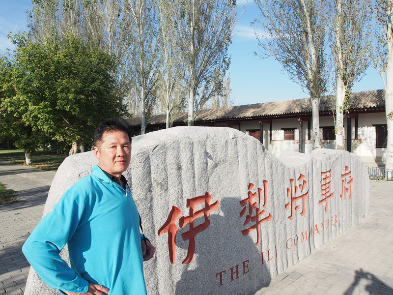作者:王国燕 新疆之行第八天 一早在酒店绿地跟老师练拳,才看清了酒店的绿地,树林高大,树木高寿。还认识了好多树种,特别是胡桃树,还结了好多果实。用好早餐,伊总陪我们一起出发。 路过伊总的建筑工地,老师下来看了那幢楼,留下影,继续西行。车到阿克图别克,伊总停下车,他要去伊利办事,和我们不走一路了,分道扬镳。这位山东大汉与老师告别,依依不舍。跟老师说,下次来一定要提前告诉他,他来陪老师玩。伊总向西,我们南下特克斯的八卦城。 没走出多远,又碰上关卡。这次不但要查身份证、行李,还要查行驶证,因本来是兰馨陪我们的,证在兰馨身上。这下麻烦了,我和师母赶紧过去,想帮她哥解围,被老师叫回,让我们坐在车上。那荷枪实弹警察和他哥搞了好长时间,回到他的办公点,要扣分、罚款。就在这时,老师发话,是时候了,要我们立即下车,去帮忙。老师在那里一站,他哥说,他们是上海来的教授,证在另一辆车上。我和师母尽挑好话讲新疆,那些警察看看我们围着的红毛巾,看看老师。客气的放我们走,不但扣分、罚款不用了,还给师母指路,说哪里的葵花最好,于是有了葵花的照片。 来到八卦城,不能俯瞰,感觉没多大意思。 在惠远古城,参观了伊利将军府。当看到清朝官位制时,“未入流”三字让我一振,常听老师说这三字,没想到还真是有出典的。在介绍民族英雄林则徐的图文前,老师讲了林则徐在新疆的作为,好多都是介绍里没有的。从地缘政治说了为什么当时新疆首府设在伊利,而不是乌鲁木齐。详细说了林则徐进新疆前,在兰州与他夫人告别时的那首诗。“苟利国家生死以,岂因祸福避趋之”。放在老师身上不就是“苟利武术生死以,岂因祸福避趋之”。 晚上赶到边境口岸霍尔果斯,入住兰州大酒店。我们这次进疆,从祖国的东端到西陲边境,横跨将近5000km。