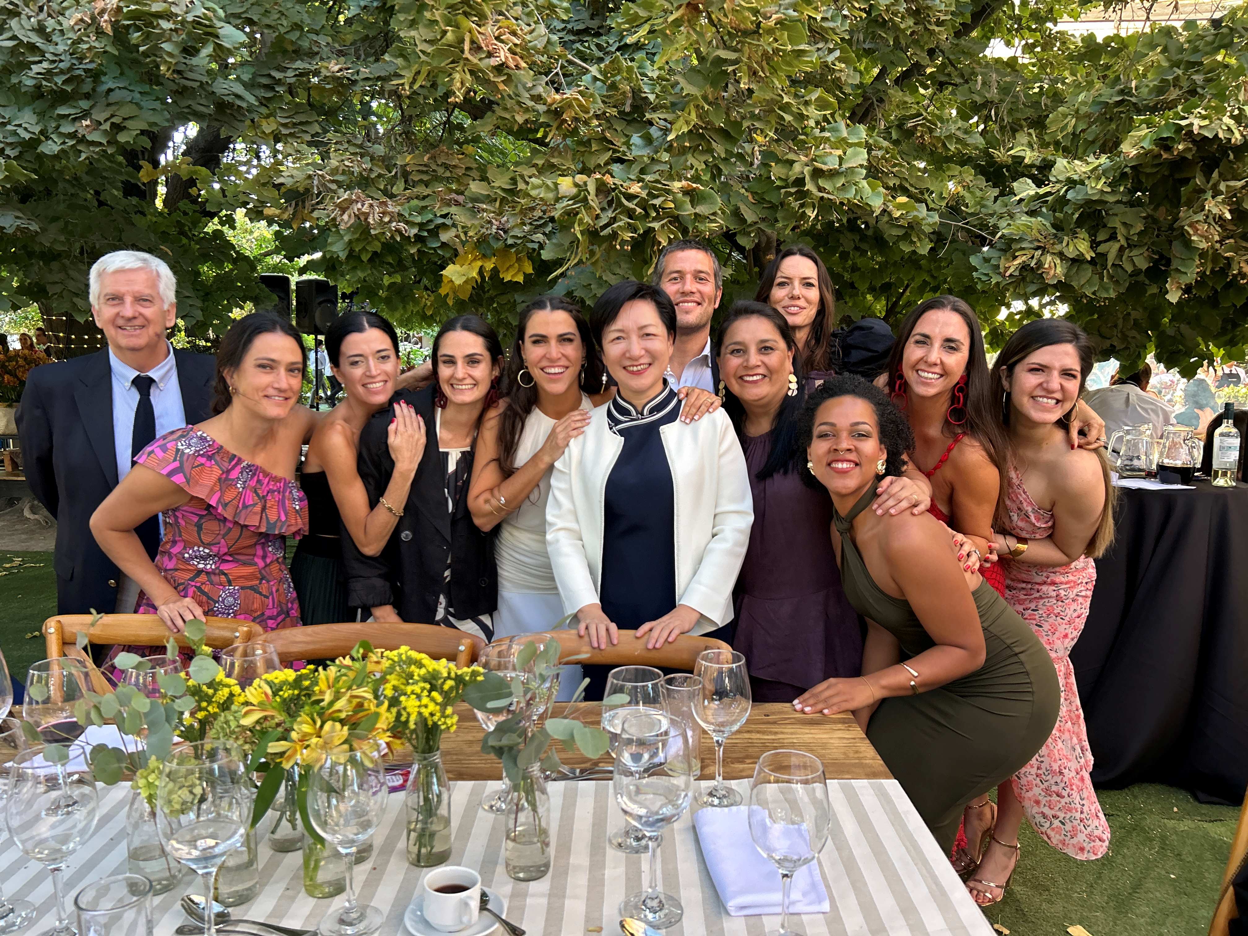 我问马丁,我从中国带了一件礼物,不知何时送给新娘比较合适?马丁说现在就是最好的时候,等一会舞会开始了,新娘新郎就没空了。我马上起身,走到主桌,主桌坐的是新人、双方的父母、祖父母、兄弟姐妹,我的礼物是中国传统手工艺品——扬州漆器花开富贵,大红色的圆盘,精雕细琢,两朵盛开的牡丹花,富贵祥和,喻意一对新人前程似锦。新娘当场打开,连说喜欢,深表感谢。新娘的妈妈伊莎贝尔专门承办国家和大型公司的礼仪宴会,审美品位极高,美国总统、中国国家主席访问智利时,智利总统举办的欢迎国宴,从会场布置到食物酒水,都是她带领手下人一手操办的。她对我送的礼物赞不绝口,一眼认出这是手工雕刻的工艺品,她拿着礼品绕桌一周,向各位亲朋好友展示着来自遥远东方的贺礼。与我热情拥抱,感谢我不远万里前来,我说很高兴看到婚礼的美满,很享受。