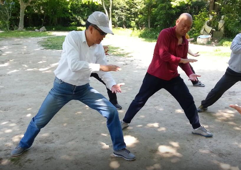 1.小凌老师对师兄们水浪拳之指导。起势,手掌不用力,靠肩和手臂之转动,将身体带动,中指引领。停车问路,左手竖掌,右手横掌,两掌劳宫穴相对,正对鼻。临崖勒马,不宜太低,两腿四六或三七开,后坐,然后,胳膊不动,随着后腿逐渐登直,身体向上,右手随之下压,两手相合。
