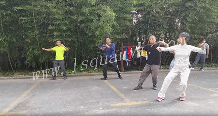 参加纠正动作的师兄弟、师姐妹有:汪家林、张俊明、陶家严、祝玉斌、潘华毅、周俊、罗建军、黄腾达、唐耀东、褚红珍、赵丹、陈清怡、裴宇灏等,拳龄从几个月到几十年的,新学员郭晓菲学习路径第二课,从第一个注坔贯月到第二个临崖勒马。