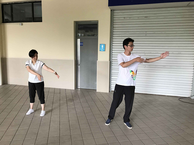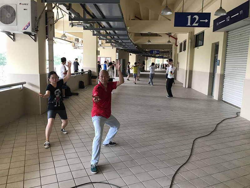 这次王国燕教练教了我们下半套的:狸猫扑蝶,抽梁换柱,风卷残云,蛰龙现身,乌龙摆尾。