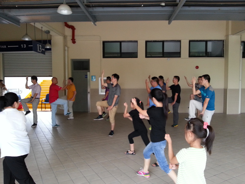 作者:郭明虎 郭明虎2017-09-09 由于暑假配小孩参加活动,缺了两次课。错过了好多招数。今天把王国燕老师的拳照看了一遍,原来有好几个地方打的不对。如:白鹤啄食:右手成爪状,抓取食物。右手呈手掌状放于右臂腋窝下。倒揭牛尾:在后面握拳的手臂应该水平放置。 今天王老师带领大家把剩下的几招全部教完了:犀牛望月、鹞子穿林、赤龙搅水、风动浮萍、气升昆仑和存气开关。 犀牛望月:接上式童子抱琴,右脚向前跨出一步,同时左拳向前从下往上击出(小凌老师看大家不明白,特意演示了一下,如何用拳头死死地顶住敌人的下巴),然后翻拳击打敌人的鼻子,收拳到腹部后,再次击打出去。再次收回左拳,右掌向前推出,同时上左腿。两手在前方呈掌交叉,头部向手掌靠拢。犀牛望月之式。 鹞子穿林:接上式,双腿微屈,左手前伸,然后,左腿后退,同时收回左手和右腿。同样,完成右式。由于动作比较连贯,很难把握。 赤龙搅水:双腿分开,双手在胸前交叉,然后双手分开自上而下画圆,在腹部交叉后,再次分开。同时,双脚交替向右侧运动。 风动浮萍:接上式,右脚先收向左脚,右手收向左手,然后右脚向右前方跨出,同时右手掌水平上举,左手掌竖直向下收于档前,同时左脚向前和右脚并拢。然后,左脚向左前方跨出,左手掌变换到左前方水平上举,右手掌竖直向下,放于档前,然后右脚向前和左脚并拢。然后右脚向右前方跨出,同时,左手化掌为刀,横批对手。 气升昆仑: 怎么过渡过来的还不是很清楚,下次上课还要请教老师或者同学们。 存气开关:转身后,双手慢慢掌心向内向上伸展,同时双腿也从微屈慢慢向上伸直,双掌在最上方,翻转由掌心向内转向掌心向外。然后慢慢拉下,收于身体两侧。