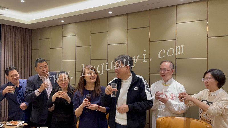 为了拜师仪式当天顺利进行,肖力行老师、师母、国燕、家明、晓希于16日中午就提前住到皇廷花园酒店。晓舟也赶到酒店看望老师,并在老师的指导下,拍了全套水浪拳。南方从福州赶来,老师即刻安排给他看拳。晓蓓安排好系里的工作,一刻不停赶到酒店,老师让酒店安排晓蓓住在同一层楼。晚上晓为、陆颖夫妇在老师的家乡川沙设宴招待大家,陆颖挑了一家本帮特色的酒家,专点老师喜欢的菜,说老师平时忙,今天晚上没事,慢慢品尝。水晶虾仁、油爆大虾、松鼠桂鱼、脆皮牛肉、扣三丝、熏鱼、清炒鳝丝、老鸭煲、蒸糟大闸蟹、草头圈子、酒酿圆子等满满一大桌。看老师大快朵颐,不亦乐乎,大家十分高兴。真不知何时陆颖如此了解老师,我们深深感动陆颖对老师的在乎,对老师的感情。