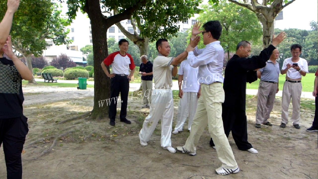 王涛和朱宏滨在打“鹞子入林”,肖师让晓庆师兄充当“大树”,他们撞上的时候,晓庆师兄还会配合的“抖”两下,我瞧着十分有趣,便也开始学了起来。(附图)