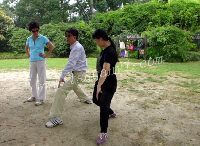 作者:凌波小仙 十大形“标准化”训练周记(四) 2013年6月16日 周日 多云 —— ——教学相长—— —— 今天,肖师首先让小樊复习了上次教的踩步。在上次的基础上,肖师指点了小樊如何打好跟步回身,进一步为小樊讲了活步的打法。为能使小樊对踩步有更全面的了解,肖师还特意让晓庆师兄打了“一步踩步”给小樊看。让我们知道了一拳三盘的练法,正盘、活盘、定盘,从而更清楚地了解内家拳之要义。 肖师看了晓舟这次打的燕子抄水,问朱宏滨教练:她现在打的燕子抄水对初学者来说已是不错了,但比你还有两点差距,你知道是哪两点吗?见宏滨摇头,肖师接着说:1、你打的时候有“起”的动作;2、你有抄水之意思,具体在哪里显示?等以后放录像的时候再给你们讲解一下。
