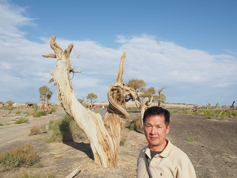作者:王国燕 新疆之行第六天 离开布尔津,总是匆匆,天未亮,就集合向西域胡杨林驶去。车上导游分发给每人一个馒头、一个鸡蛋,一瓶矿水作为早餐颇为艰苦。辛亏昨晚和老师一起在布尔津的面包房买了黄油烤的面包、蛋糕。蛋糕纯正美味,烤面包比上海西点屋做的还要好,出乎我们的意料。 车进胡杨,一片沧桑沉寂、悲壮凄凉的胡杨林,看到空旷无边,千姿百态的一颗颗胡杨树耸立在那里,甚为惊璨,每一颗胡杨树似乎在向游人诉说着它们千年走过的不朽历史。胡杨生长能活千年,死后千年不倒,倒了千年不朽。缺水风大的恶劣气候,胡杨树的生命竟能如此之长,让我们不禁感慨。 走出胡杨林,导游带大家来到宝石滩探寻宝藏。诺大的宝石滩让大家颇为兴奋,老师和家明加入了寻宝队伍,大家都期待找到好的宝玉。导演和司机拿着专用工具,各自练宝石。老师先找了一块宛如撬棒的石头,当工具,也捡起来。师母和我也帮着老师一起找。最后老师挑了大、中、小不一三块的石头。(回家后,一位内行的朋友知道老师拣了新疆宝石滩石头,看了说,老师拣到宝了,价值以万计。) 11点多吃午饭,平时都是2点左右吃,手抓饭、羊肉汤面,颇为可口。请导游和兰馨联系,告知她我们午饭后,将在1;30点左右到克拉玛依,请其在某处接。 兰馨驾驶着她的大奔,行驶100多公里,提前到达。怕我们没吃好,路上就和她经常请客户的那家农家乐联系,要店家准备下,然后直接进人农庄。农庄主和兰馨很好的,拉开铁丝门,让我们参观他家果园,葡萄、苹果、杏子、山楂、等,请我们挑好的吃,还送了二大袋。盛情难却,一桌大餐,尤其是那条大的冷水鱼,味道好极了。实在吃不下,颇为可惜。 席间兰请教老师,说起在看南怀瑾的书等。老师说南怀瑾的书,某些地方言过其实,不懂装懂。可以为资,不可为师。应该先把孔子的书好好读一下,这是经典,同时自己要去质疑。不止要懂,要会,还要用,只有会用了,才真正是自己的。老师的因材施教,让兰明白了“师”与“匠”的根本区别,让兰敬佩不已。 当时兰就说,老师实在太优秀,感谢晓舟,把老师介绍给她。恳请老师留下来,暂时就不要回上海了,多留点时间教教她。复旦总裁班学费好多万不说,每次来回花费也算了,时间精力要很多,而得到的教育,远不能和老师相比。 兰给老师介绍了独山子的旅游点,和黎明一样,说到这里一切由她安排,你们都不要管。 我为难的看了老师一下,老师说,就听兰馨的吧。 兰馨利索,很像老师。带我们看市容、观历史博物馆。火山还在开发,山路崎岖,震碎了西瓜,兰馨说扔掉。老师说不能浪费,能吃多少算多少。没有刀,叫家明用手扳,于是不但留下了吃西瓜的众生相,还把我们之间的距离一下子拉近了,融洽的感觉油然而生。 安排好大酒店,稍作整修,去看独山子大峡谷。老师震惊了,看过不少大峡谷,没想到这里的如此独特。夕阳西下,晚霞变幻,奇光异彩,美不胜收。兰馨说:老师一来都变得美了,以前这么没发觉,以后要多来来。老师说,现在的朵朵云在上海,只有秋天有。不知这里如何?兰馨说从没注意,以后留心观察。老师又说,还很特别,那云在空中好长时间,纹丝不动,这云在上海会走得很快。 老师几十年来一直在质疑王维的一句诗“大漠孤烟直。。。”问兰馨看到过吗?是否真的存在?如何更正确的理解王维的确切意境。兰馨对老师真好,说没见过。要不叫人在大草原上放把火看看? 兰馨给我们在山里安排的晚餐,还请了她三位好朋友作陪。老师不知兰馨如此费心,吃饭还上天山,颇有冷意。周琼总经理马上脱下外套,让老师穿上。又是一顿新疆最好的饕餮大餐,又是谈笑风生,还交上了这三位朋友。