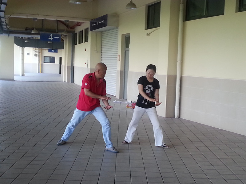 到达体育中心后,先跟储礼贵教练学习踩步,这次学到的要点是步子在踩出去的时候要手脚同到,另外就是后手要作为前手的支撑。
