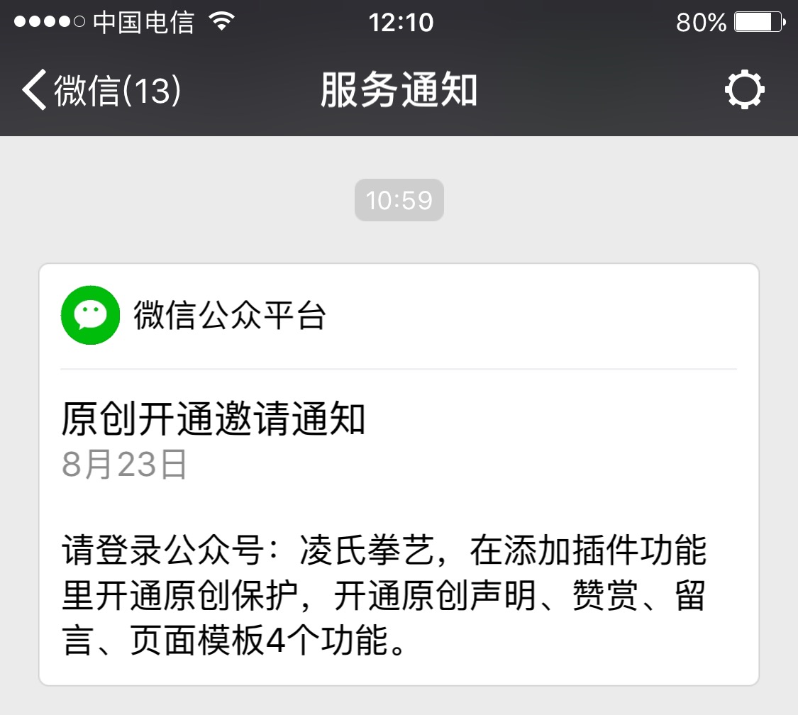 → 热烈祝贺凌氏拳艺微信公众号受邀开通“原创保护”功能!!!