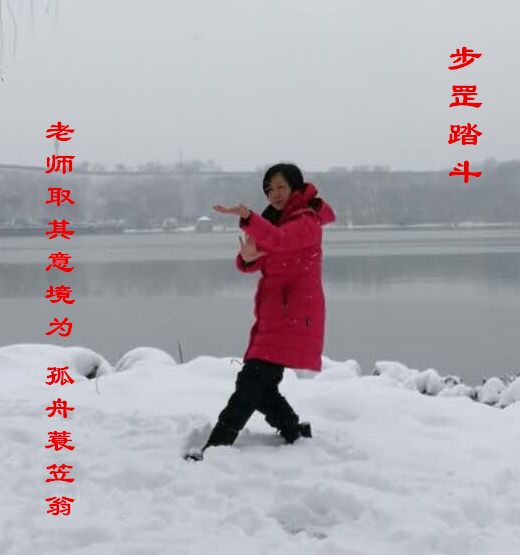 孤舟漂泊打转,何日见冯唐?柳宗元就是在期待正确方向的来临。步罡踏斗,什么是罡?四正为罡。管仲对齐桓公说,治国之道,国之四维,礼义廉耻。四维绝,则国亡。四维乃治国之纲领,也就是正确的方向。放在拳里,就是取这个意思。第一步决定了后来的方向,一定要踏正。这记拳要打的大小方位,都在第一步上决定,所以我把这记步罡踏斗拳比喻为孤舟蓑笠翁。