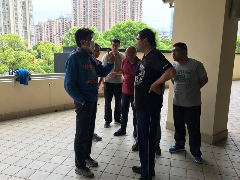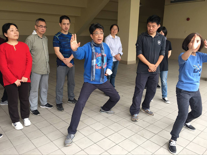 训练结束,我敬请老师对今天教学上不足予以指点。开刀损伤了喉咙、元气尚未恢复的老师,声音比平时明显轻了许多,却不忘先予鼓励,讲道:“今天的课你上得还是蛮认真的,但存在两个问题需要注意,首先给这么多人一对一纠正动作时,可以提醒其他人放松,否则叫大家都摆定一个动作等待,会吃不消。这又不是“陪斗”!”老师的幽默话语,引得大家哈哈大笑。“其次要讲清每个动作的方位,手脚的具体位置,这样大家回去打,才会心里有数。”老师简洁明了,切中要害的指点,顾大局,接地气,辩方位而准则。