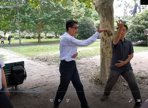 精妙绝伦的一课,在酷热盛夏的下午结束了,让我们再次体会到了内家拳教学的难度和高度。看到老师被汗水全部浸透的衬衣,真担心老师过于劳累回去又要恢复好多天。此时此刻我眼前浮现刚进入团队学拳之时,凌汉兴老师来中山公园旁观肖师教拳的情景,凌老师慈祥满足的神情看着肖师教,看着我们学。今天凌老师在天之灵有知,一定也是同样宽慰的心情看着我们。耳边响起了2012年电视台采访96岁凌老师中气十足的话语“国家要强盛,老百姓一定要身体健康,这样国家才就会兴旺”......
