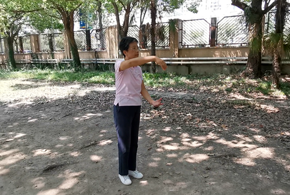 我打的五云捧日,被老师火眼金星的捕捉到了问题:左手的把控度不如右手。告知我,右手控制比左手好是常规,运行时,左手把控度可以适当比右手大一点。在老师的点拨下,再次演示因刻意迁就,身体出现了侧倾,不自然,偏差更大了。老师的一句不迁就,点醒了我,师说,当前给你指出的是外形问题,唯有回去多练,把体感打出来,就能不走样。