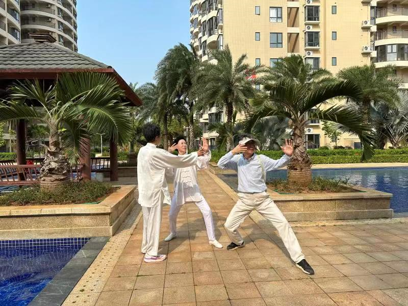 冬季的海南气候宜人,早晨六点在鸟儿的欢鸣中醒来,晨光熹微。推开窗户,弥漫花香的清新空气迎面扑来,沁入心肺,新的一天又开始了。远离上海的喧嚣,旅居海南的日子惬意而舒适。以传承为使命、普惠大众的肖力行老师,走到哪里,都不忘嘱咐我们传授内家拳术。文昌凌氏拳艺培训点自2021年底开设以来,今年是第二期。