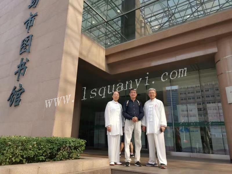 之前兴健特在酒店背景墙拍了几张拳照,感觉尚可,到现场后老师发现灯光亮度不够,不得不重新寻找。跟着老师大踏步的来到隔壁的青岛图书馆,从楼下走到楼上,再从楼上回转到楼下,终于在底楼书法展示厅找到了理想的拍摄场地,二个多小时的拍摄,无外人打扰,冥冥之中,这个展示厅好像就是为我们这两天拳照拍摄特地准备的。