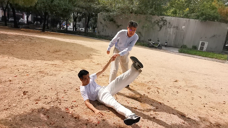 到了现场,老师有很多灵感,比如十大形的鹞子穿林、穿拳围着树练,按照老师的想法拍出来的就好。玉子导演说,明显感觉到老师对于拳的理解,对于拳与环境融合的想法是最优的。如果我们做了设计初稿,然后开讨论会,请老师参加,再加以调整,那展现出来的效果一定会提升不少。但时间仓促,准备仓促,这些都没有做。