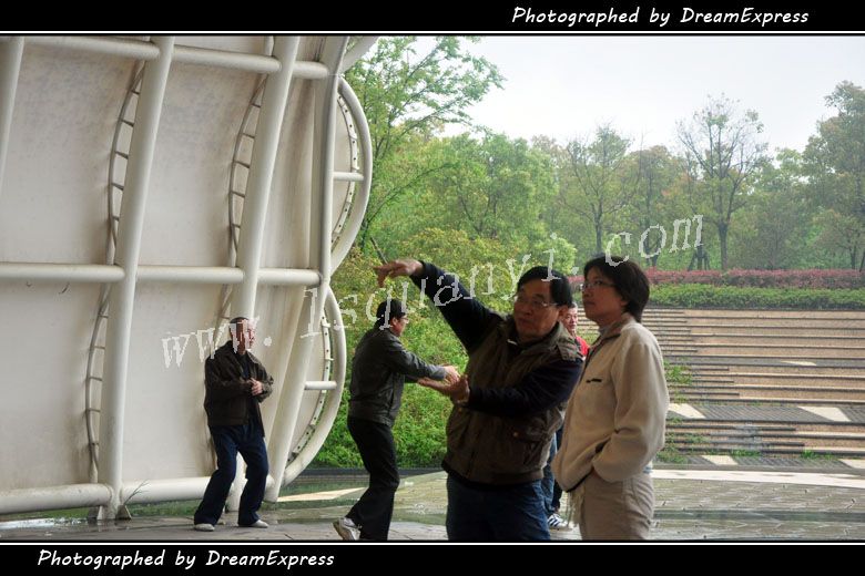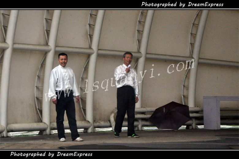 我们按照公园地图指引,来到贝壳广场,两位师兄身着拳服,练得汗流满面。