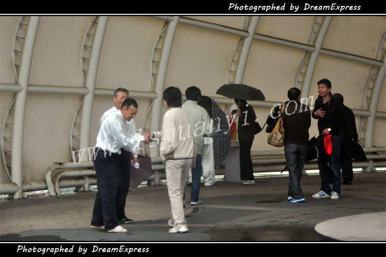 同门见面,分外亲切。贝壳广场居然放了一把竹梯,正好方便我们将横幅挂上。小凌老师非常高兴,说:“真是天助我也。”身手敏捷的葛师兄,在大家协助下,爬上梯子,挂好横幅,现场气氛立马热烈起来。