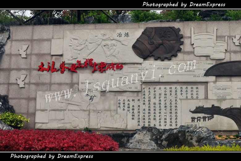 信步走过一条长廊,眼前突然一亮,下沉式美景——矿坑花园,引来大家一片欢呼,这里别有洞天,好似一个精致的盆景。只是这水,是因为含有矿物质,还是被污染,才造成如此的颜色?
