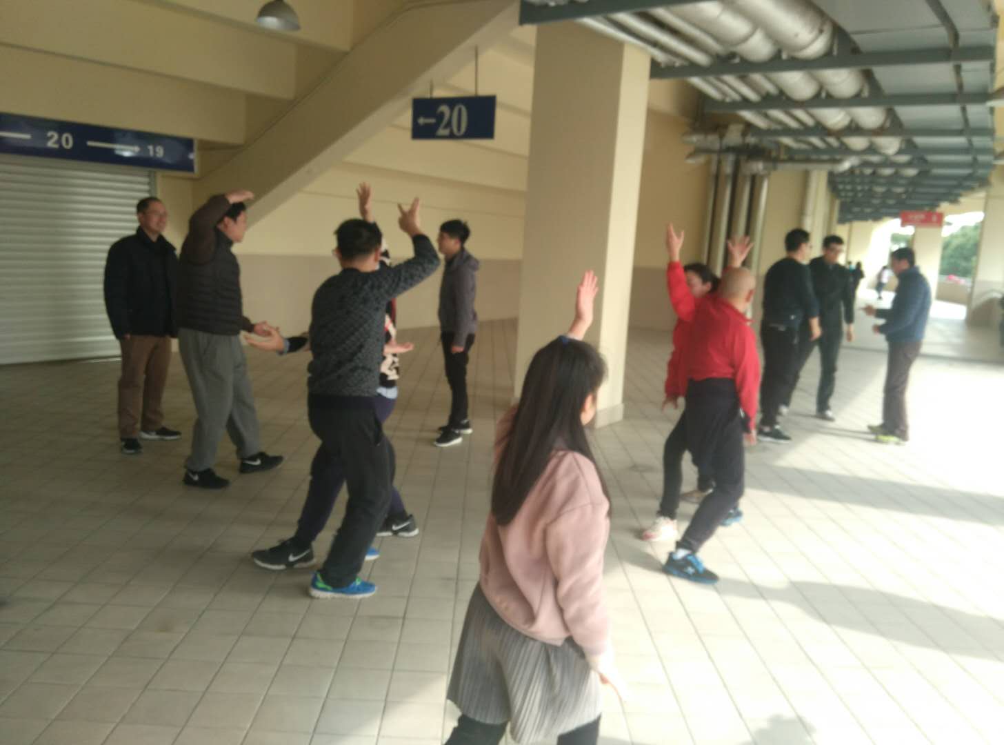 小凌老师见理事长来了,赶紧让大家学习鹞子入林,这记十大形中需要二人对练的拳。小凌老师说,原来这记拳是一个人练的,撞树。后来,凌老师为了增加学和练的效果,设计了二人对练。为提高大家的学习效率,小凌老师给了教练员两点指示:1、刚开始,过程可模糊点,让大家先熟悉路径。2、轻步站后,先打互撞一记,1,2,3做出来。果不其然,储教练按此教后,大家很快就把路径掌握了。纷纷对练起来。