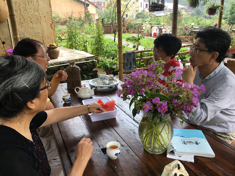 作者:王国燕 肖力行老师宜春之行 年初以来,老师为书的再版,不辞辛劳,4月因过度劳累、过敏引发了严重的鼻窦炎,疼痛难忍,不得不住院手术。众弟子看在眼里,急在心里,晓希、晓舟和我等多次要求老师出去修养几天,老师一直未允。7月底,书的整理已近完工,老师终于同意了晓舟的请求。 在严总夫妇盛情邀请下,8月5日,分会训练结束的第二天,老师带领晓舟主教练、王国燕主教练、柳家明主教练启动了江西宜春之行。八天的行程,严总安排得丰富多彩,泡温汤、游泳池、览古村、登高山、赏峻林、下谷底,观飞瀑、尝美食,其乐融融。现在还回味严总亲手为我们烹制的佳肴。 5日一下了高铁,严总已经驾着他的别克商务车在接站口等候我们。得知严总之妻少微女士带女儿提前一天专程从上海赶到江西,为老师打理住房,并迎接宴请我们一行,下午还要赶回上海,助手小韩也赶来一同随行,令老师动容。 虽然老师与严总第一次见面,却是神交三年了,一见如故。在听了严总介绍宜春的民宿工程进展情况和发展思路后,老师说:“累毋容置疑,看得出你能力超强,游刃有余,还特享受其过程。”一句话点到严总心里,来宜春四年的严总,为了工程选址,几乎踏遍了宜春的每一个角落,对宜春的熟悉甚至超过当地人。 看了宜春有名的温汤镇,用完午餐,安顿好住宿后,严总带着我们一行去观赏了当地鲜有人知的、坐落在群山深处的一颗2800年树龄的樟树,十多人才能环抱的主干,其粗壮的分支向前蔓延有10多米,伟岸的身姿和博大的气势令人称奇.老师带着我们一行在神树面前祈福、膜拜,祈盼凌氏拳艺的生命力像樟树爷爷一样,千年传承,屹立不倒。晚上在有200多年历史的农家民居吃着山珍河鲜,大快朵颐。 为了让老师睡得安稳,严总夫妇特意把自己从不给客人居住、装修得精致温馨的“御泉风情”雅居给老师师母住,室内还有一个诺大的温泉池,让老师随时享用。自己和助手搬到山上居住,令我们心怀感动,给我们事先订好了离小区不远的四季明月大酒店。每天清晨我们步行来到老师所在的小区山顶晨练,呼吸着清新的空气,在花香鸟语中行拳格外的舒适宜人。 第二天上午,游览洪江镇古庙村,浓郁江南风格的古村落,一步一景醉游人。翠竹傍、卵墙边、小溪上、古杏下,均成为大家争相留影的绝佳之地,晓舟在老师的指点下,拍摄了一张可能是她一生中照得最好、最传神的照片,令她兴奋不已。累了,在茶舍小憩;饿了,在农舍午餐。品尝果园新鲜的葡萄和黄桃令大家体会到严总的细心。下午我们来到仰山栖隐禅寺参观不久,晓舟接到了从上海特地赶来拜会老师的冠军赛车手张臻东父母的电话,他们刚抵达宜春。 臻东父母带我们参观了三套宜春新居,请老师日后随时来住。晚上在当地最大的饭店宴请我们。臻东父亲甚为健谈,与老师侃侃而谈其培养冠军儿子的艰辛历程,苦中有乐,满满的自豪感。老师在赞赏之余说,你们的付出是超常的,然而与臻东得到的成功相比,合算得不得了。孩子的成长有快有慢,作为长辈,如果有个理性的总结,对孩子会更好。我虽然不会开车,但从中国人的哲学观点来看,世界上成功的东西道理是一样,与打拳没啥区别。车子开得好,一定做到四合;一是车与人合,只有人车浑然一体,才能知晓车距之间的毫厘之差;二是车与路合,熟知当期所开的路况;三是车与车合,感知自己的车和对方车的情况,才能把握好自己的车去超出对手;四是人与人合,了解对手,熟知对手的性格、习惯和作风的基础上,找出破绽去赢他。当作爱好的事业去做,任何时候都需要“敬”字当头,方能长久。说得臻东父亲连连点头。 原定第四天臻东父母陪我们去武功山游玩,前几天就订好离金顶最近的酒店,因景区酒店爆满,把他们给我们订好酒店的款子退给他们。臻东父母这次来宜春,一来宴请老师,二来就是陪我们去武功山玩,如此一来,他们只得打道回府。临行一再邀请老师回上海一定要去他家聚聚,老师不但允诺,还说到时还要带些朋友一起去玩,臻东父母很高兴。我私下问老师,他们请你,你怎么还说带些人去?老师回,虽说这是第一次与臻东父母见面,但东巴豪爽,崇义而喜五湖四海。不得不佩服老师知人之明。 第三天严总特意安排老师上山参观他的工地,恰逢工程楼板浇灌,百忙中的严总挤出时间接待我们。从酒店到山上,6公里路程,10多分钟就可抵达,非常的便利。一到工地,绝佳的地理位置,令我们眼前一亮,远望,水绕青山山绕水,山浮绿水水浮山。蓝天、白云、青山、绿水,每一个角度都是胜景。为建民宿,严总尽调了全球各地民宿山庄,取他人之长,补他人不足。严总详细介绍了发展当地高端旅游业的实施规划,竣工之后的这座宜春民宿将是集旅游、度假、开会、休闲、学习等综合多功能的酒店,待明年底建成后,将大大提升当地的民宿品质。清新的空气、富硒的泉水,有机蔬菜,山珍河鲜,宜春天然无污染的旅游资源和具有特色的旅游项目,将会成为城里人旅游度假的最佳首选。严总与老师详谈了今后酒店与凌氏团队合作学习凌氏拳艺的设想,老师让我把我们网址发给严总,让严总有空对我们的拳艺先有个大概了解。没想到第二天,严总把他太太浏览了我们网站后,认真手抄了“心意技击二十四法歌诀”给老师看,老师惊叹于少微对拳的缘份,建议少微抓紧把拳学好,争取早日成为凌氏拳艺在宜春传播的