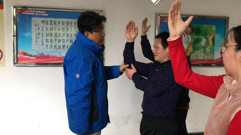 “武痴”吕文发师兄跟老师打完水浪拳后说,“老师呀,我每次跟着你打拳,就觉得自己要么少一只手,要么少一只脚。”我们听了一头雾水。老师一听却哈哈大笑:“小八子呀,你是因为看到我身体在动,就感到自己跟不上了,他们看到的是我手脚在动,不会有什么难跟。你说少一手或一脚,你的双手双脚中还能有三样跟得上我,说明你的功夫越来越深了。”老师又一次懂了文发师兄,难怪,每次文发师兄总要向老师问几句话,每次听老师说完就舒心不已。