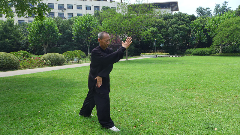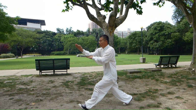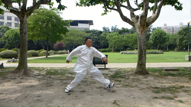 前三后七随君移:“随君移”的“君”是指敌人。“轻步站”站姿的重心是前三分后七分,这样相对位移速度就快,能得机得势。