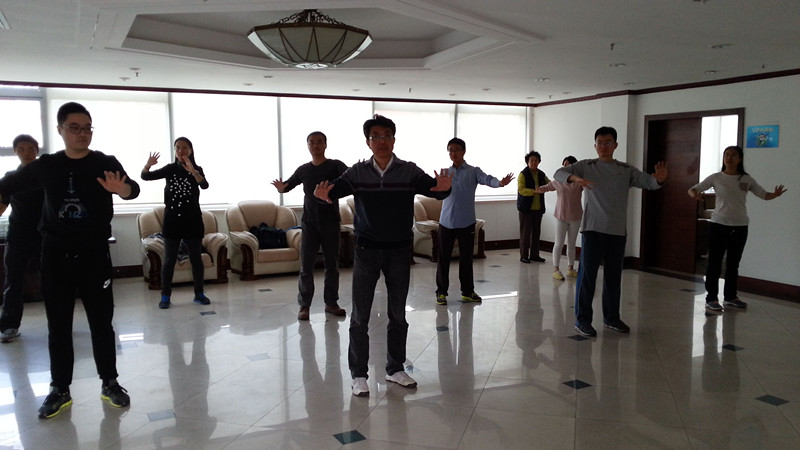 作者:刘运杰 学拳小记 这次学拳,先复习上次教的内容,然后王国燕教练教到第二个“临崖勒马”。在学的这段动作上,转身比较多,比第一段难度加大。在练习的时候,小凌老师对我们说,打拳要放松,要安详,并带我们打了一遍,跟着小凌老师打,有些动作能体会到轻灵的劲,跟着自己也变得轻灵了。这次学习体会主要有三点:第一,打完后腹部热乎乎的,很舒服,结束后一两个小时都是这样,是不是气血活动开了;第二,自己的左腿很酸,我认为是自己的动作不正确,特别是“闭门推月”后的转身,左腿没有调整过来,有点“拧”着用力,到了晚上很累,早早上床就睡了;第三,“临崖勒马”中两脚的角度掌握不好,王教练帮我纠正了多次,需要在练习中多体会。