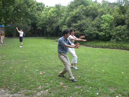 本次2期班完成第六式“摘星换斗”的教学,亲子班的教学内容则为7式“鸿雁双飞”、第8式“闭门推月”、第9式“孤雁出群”