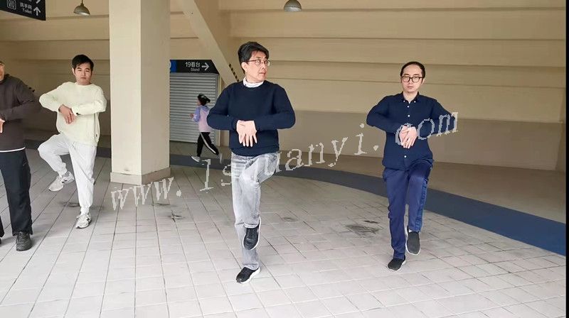 鸿雁双飞,双掌交叠翻掌,不要握拳。然后要贴着身体,提起,抬腿,身体不能后仰,功架就出来了。