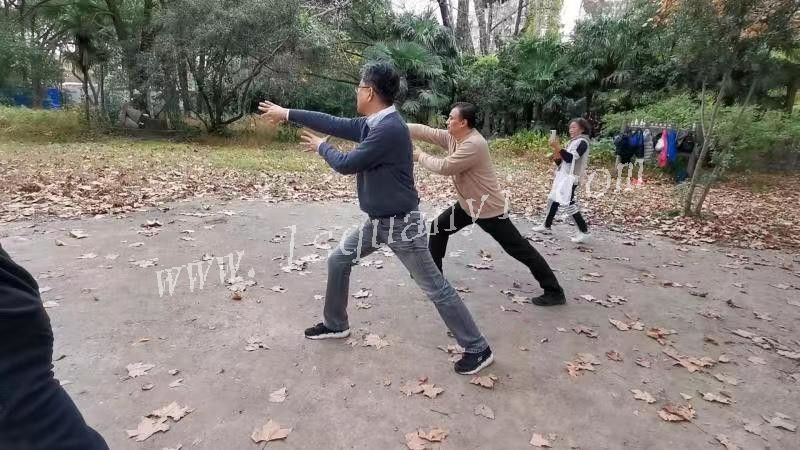 5.中线对正与两脚的位置:中线对正是从实战角度根据假想敌位置保证自己身体中线对着对手。为此,需要体会两脚的位置,特别是又需要一个脚为轴而另一个脚变换位置的时候。今天聚到的例子是鸿雁双飞前转身后的右脚应该放在哪里的问题。