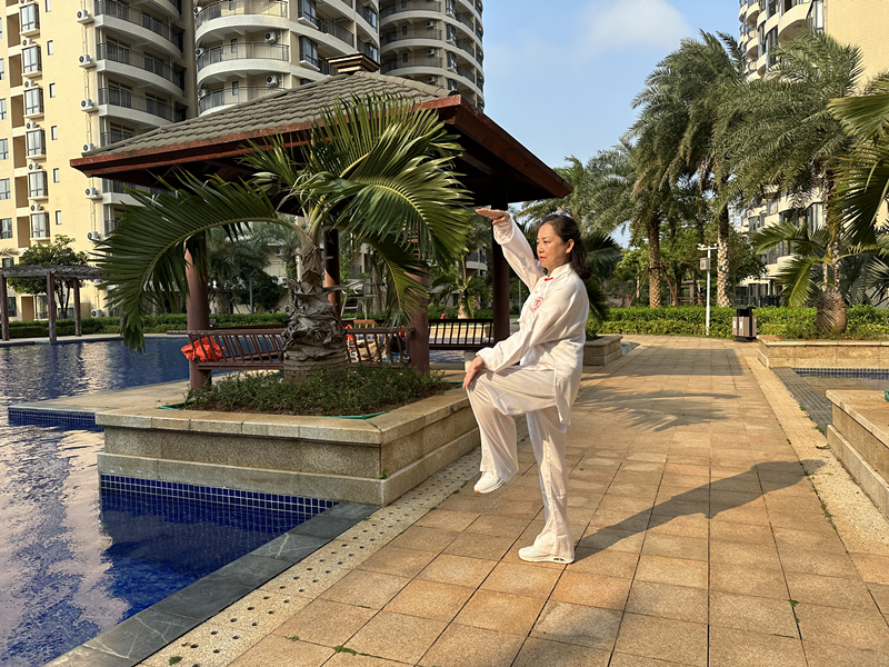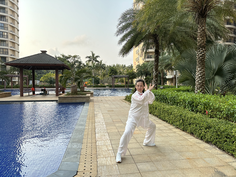 后来根据王老师每周纠正的问题,逐一改正,勤奋练习。在练习过程中,原来自己感觉做得很到位的动作,却存在不规范的情况,原来觉得许多不顺畅的动作,也逐渐变得顺畅起来,动作更连贯,整套拳练习下来,轻松自如多了。比如做“抵篙摇橹”动作时,身体下伏太低,动作过大,腰背有时酸疼,还不自知,老师纠正后得到了很好的缓解。