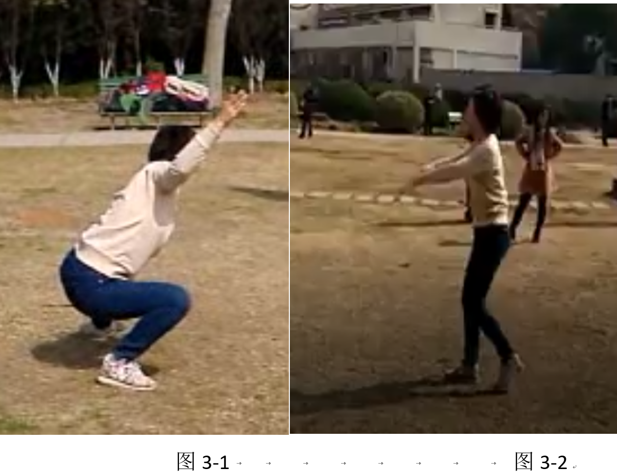 图2 第26式“燕子抄水” “燕子抄水”如图3-1,其后一记,起立、右脚上步、右手随身体向前向下插。这个上步手前插的过程,要手到脚到。