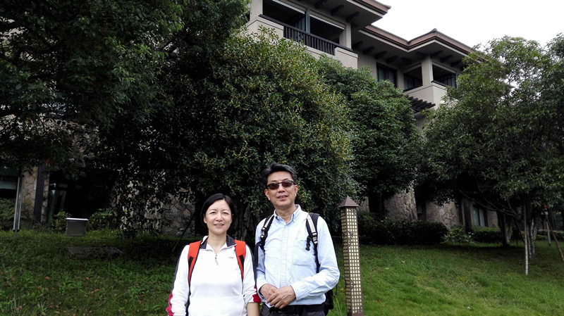 君澜度假村坐落在良渚文化村内,依山傍水,占地面积很大,酒店的建筑风格古朴典雅,一栋栋矮矮的楼房错落有致,散落在重重叠叠的绿树丛中,好像在一个大公园里造了一些别墅。园子里遍植桂花树,正当桂花盛开时节,空气中四处弥漫着馥郁的桂花香,沁人心脾。在园子的中间,有一个清澈的湖泊,湖泊边上有各种水草和水鸟,湖边有一个很大的平台,小凌老师每天早上就在这个平台上带领大家打拳,临水而立,远眺湖对面的一抹青山,呼吸着充满桂花香的空气,感觉实在美好。跟着老师,大家的动作也都优美了几分,有一只美丽的白鹭全程伴随,时而翩翩起舞,时而凝神注视,也许是身着白衣的老师动作轻盈舒展,让白鹭误以为是同类吧。如果有人从平台上方把我们跟着老师打拳的场景拍成照片,一定是一幅美丽的图画。