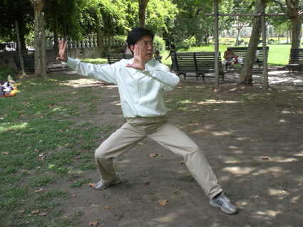 行拳时要肩催肘,肘催手,肩尽可能地向前透出,才能在技击上取得好的效果。风起于青苹之末,感敌之势,前手是也;叶摆于水面之上,牵彼之劲,后手是也。风叶相联,根之所系,身动是也。