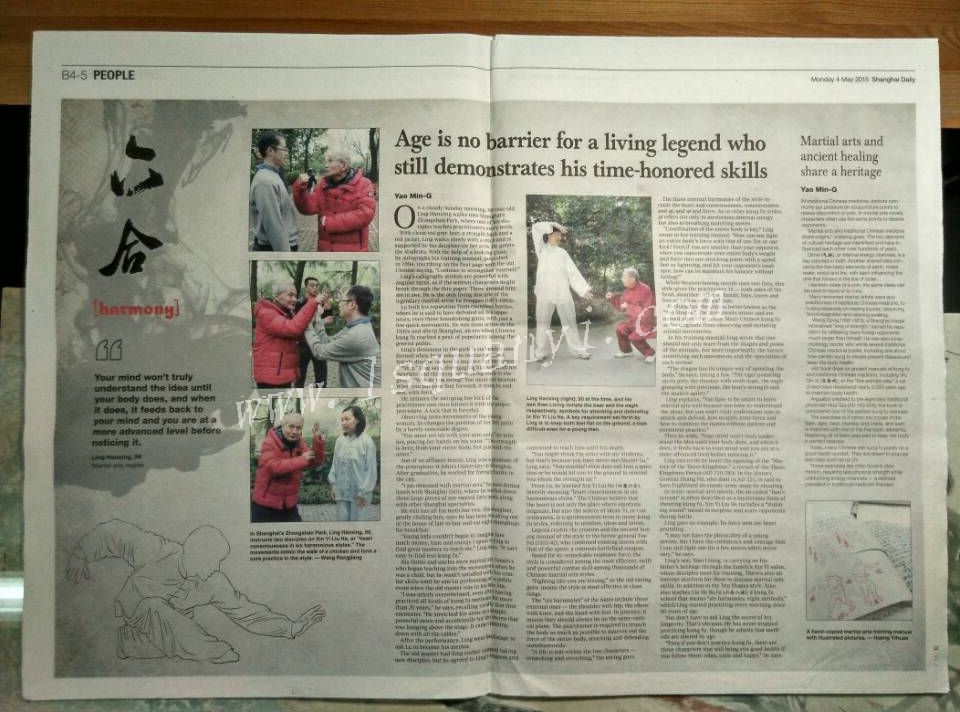 2015年4月3日上海英文日报姚敏吉记者采访时年百岁的凌汉兴老师